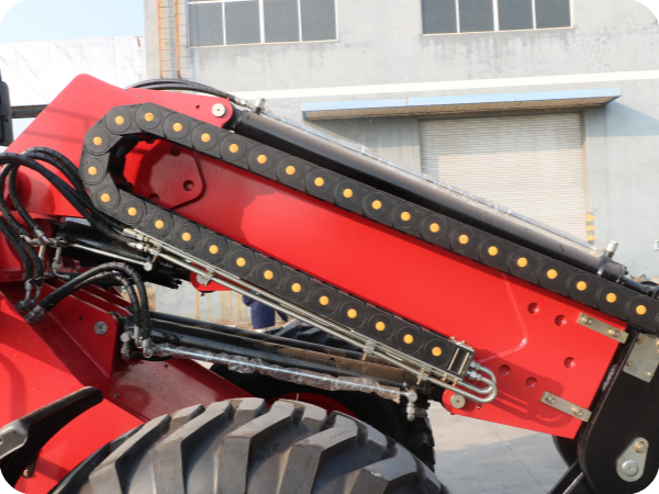 3.Features 4-wheel drive, articulated hydraulic steering, hydraulic quick coupler, and pilot joystick control, enabling smooth,responsive maneuvering. The steady lifting function ensures precise material handling, boosting work efficiency.